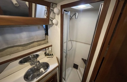 This spacious yacht is a experience for everyone to embrace! Especially when it is located 15 minutes from Bourbon Street. 2 staterooms with double beds and own bathrooms. The couch pulls out into a double bed as well. Sun bathing on the bow, to morning coffee on the upper helm. This waterfront experience is waiting for you