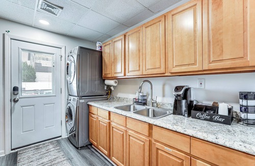 KITCHEN- Stove/oven, refrigerator, microwave, double sink- Keurig coffee maker, blender, toaster - Cooking basics, dishware & flatware - Trash bags/paper towels- Water filter