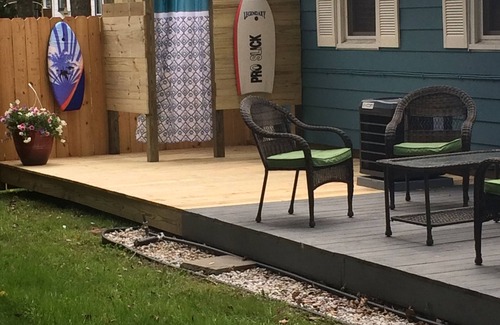 Outback is a nice private fenced in yard. Great for the pups so you don’t have to worry about them running away. There is an outside shower to rinse off the sand after a day at the beach. And you can relax and have dinner out back as there is a gas BBQ grill and an outdoor seating.