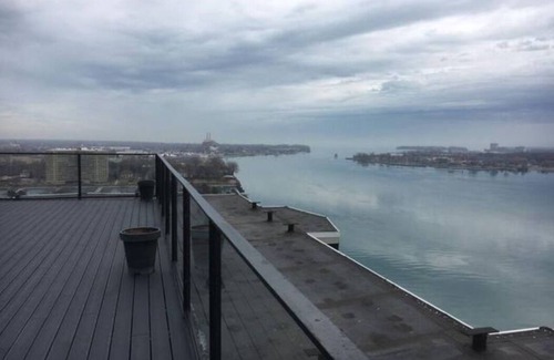 This is a 800 sq ft 2 bedroom furnished condo with a nice riverfront view overlooking Belle Isle and the Detroit Yacht Club. This suite is perfect for work-from-home professionals and the building features a rooftop "penthouse" meeting area that is perfect for meeting with clients. This well-maintained building is located in the Gold Coast neighborhood along the river and it's approximately 5-10 minutes east of downtown Detroit. Paths to Belle Isle & Riverfront are minutes of walk away and you will find plenty of groceries and restaurants option within walking distance.