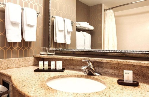 Ideal for larger families and groups of friends or colleagues looking for accommodation in Louisville, the 2 Room Suite-1 King Bed-Non-smoking connects with the 2 Room Suite-1 King Bed-Non-smoking-ADA Accessible to create over 860 square feet of space. Featuring an accessible bathroom and a roll-in shower, this pair of connecting suites boasts a total of two bedrooms, with two King-sized beds and premium linens to help you sleep more soundly. As the evening settles in, pour yourself a drink from your wet bar and enjoy it in one of the two separate living spaces. This pair of connecting suites also offers two sofabeds, perfect for any extra visitors you may wish to have over. Two-room suites with modern kitchens offer a relaxing home-away-from-home feeling at the hotel. Start your morning off on the right foot with a complimentary breakfast featuring made-to-order omelets, oatmeal with toppings, cereal, and pastries, and unwind after a busy day at the evening reception, where you can enjoy complimentary beer, wine, cocktails, soft drinks, and appetizers. Downtown Louisville and the Louisville International Airport are both within a 20-minute drive, and you'll find plenty of options for on-site recreation including a fitness center, a cafe serving bistro-style fare, and an indoor pool with a hot tub.In November 2022, Hilton and Peloton Interactive, Inc. announced an industry-first partnership, making Hilton the first hospitality brand to feature Peloton Bikes across its entire U.S. hotel portfolio of 18 award-winning brands. Nearly all 5,400 U.S. Hilton-branded hotels - from Hampton by Hilton to Waldorf Astoria - will feature at least one Peloton Bike in every fitness center, providing guests with a more holistic wellness experience, including access to Peloton's world-class instructors and expansive connected fitness content. For more information regarding Hilton and Peloton Interactive, Inc's partnership, please contact Hilton directly.