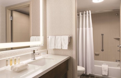 The 1 King Bed Studio Suite is a spacious study in apartment-style comfort. The large living area features a fully-equipped kitchen with twin-burner stove, a dining area which can double as a work desk, and a commodious sofabed for added convenience. The sleeping area boasts a King-sized bed and blackout curtains to ensure a full night of deep sleep. A modern bathroom also adorns the suite with a curved-rod shower/tub combination and expansive vanity. This suite is ideal for those seeking a studio suite in Washington DC. Stay right in the heart of historic Washington, D.C. at the hotel. This all-suite hotel is just a six-minute walk from Nationals Park, making it an excellent choice for MLB fans planning to attend a game, and a nine-minute walk from the picturesque Anacostia Riverwalk Trail. Popular attractions including the United States Capitol, Smithsonian Museums, U.S. Navy Museum, Supreme Court, and Washington Monument are all within a six-minute drive. Each suite features a fully-equipped kitchen that makes this hotel perfectly suited to extended stays or traveling with children, and the hotel offers a complimentary grocery shopping service to ensure everything on your list is ready and waiting upon your arrival. Your stay also includes a complimentary evening reception with drinks and appetizers, as well as a hot breakfast each morning.In November 2022, Hilton and Peloton Interactive, Inc. announced an industry-first partnership, making Hilton the first hospitality brand to feature Peloton Bikes across its entire U.S. hotel portfolio of 18 award-winning brands. Nearly all 5,400 U.S. Hilton-branded hotels - from Hampton by Hilton to Waldorf Astoria - will feature at least one Peloton Bike in every fitness center, providing guests with a more holistic wellness experience, including access to Peloton's world-class instructors and expansive connected fitness content. For more information regarding Hilton and Peloton Interactive, Inc's partnership, please contact Hilton directly.
