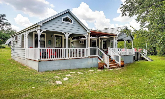 Escape to Porchside Retreat at Skyview Ranch, where two cozy cabins—Cactus Cottage and Sunset Shack—await in a serene 3-acre valley. Connected by a covered porch, these cabins offer a peaceful retreat amidst nature's beauty. Guests will have exclusive access to a dedicated Swim Spa Deck featuring a swim spa, Weber grill, and sun loungers. Unwind with shared access to a fishing pond, game arena, hiking trails, and the Sunset Deck, perfect for enjoying stunning views and outdoor activities.
