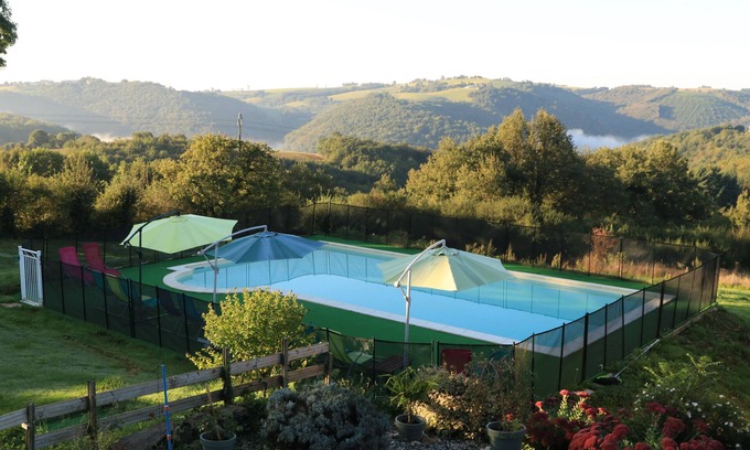 Set in outstanding scenery overlooking the Viaur Gorge this beautifully restored former fermette offers traditional rustic architecture whilst providing all the modern comforts of home. The farm complex with its own pool is in a small hamlet located on the border of the Aveyron and Tarn departments offering easy access to all that these fabulously un-spoilt departments have to offer. Accommodation is spread between 3 separate gîtes with shared grounds and pool. It makes the ideal set-up for a large family reunion.