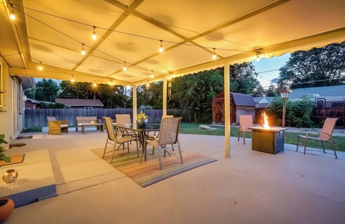 Located on the ground level, walk out to our back patio and enjoy the covered seating and propane firepit.