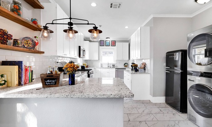 Located in central San Antonio, this 100-year-old home has easy access to all the places you want to visit! This listing is for the WHOLE HOME (3 bedroom, 2 bath, sleeps 8). We are awaiting your visit local San Antonio decor, a comfortable place to relax, and personal touches uniquely suited for your time away. Don't forget your furry friends! (Up to 3 small dogs or cats allowed)