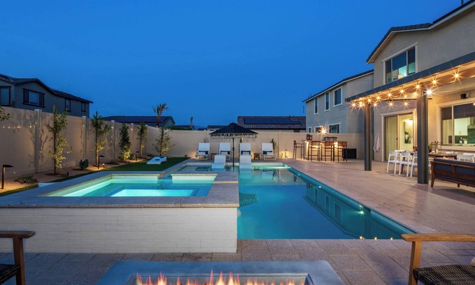 Welcome to your desert getaway! This 6-bedroom, 2800+ sq. ft. home is 2.3 miles to the Coachella festival grounds and is complete with pool, spa, game room, firepit, outdoor living and dining, bbq/bar, and more.