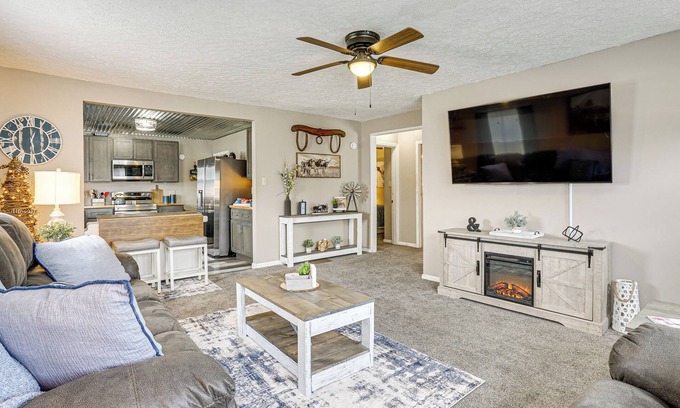 Trade crowded cities for small-town charm and outdoor adventure at this Paoli vacation rental. Tucked in a quiet neighborhood just 2 miles from Courthouse Square, this 2-bedroom, 1-bath home puts you close to shops and historic architecture. Spend your days trekking through Hoosier National Forest or kayaking along the shoreline of Patoka Lake. Wrap up the day with stories and warmth by the fire table.