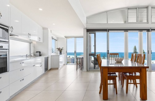Spectacular curved high ceilings increase the sense of space in the lavish open plan living area that seamlessly flows to the ocean front decks where you'll find comfortable outdoor seating in which to relax and soak up the panoramic views.