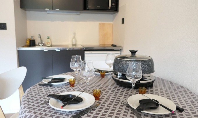 2-room apartment for 6 near the slopes, balcony, pool, parking is located in Saint-Gervais-les-Bains. 2-room apartment for 6 near the slopes, balcony, pool, parking provides accommodation, featuring Fireplace/Heating, Child Friendly, Kitchen, among other amenities. This Apartment features Fireplace/Heating, Child Friendly, Kitchen, to make your stay a comfortable one.