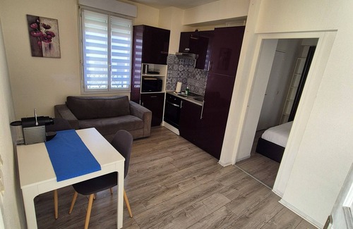 In the center of Nice, a few minutes from the train station, Avenue Jean Médecin and the Promenade des Anglais, this 25m2 T2 apartment has all the comfort and calm you need for your stay. This T2 has a kitchen open to the living room, a separate bedroom and a pleasant and large terrace. You are close to public transport. The cleaning is done by professionals before your stay.
