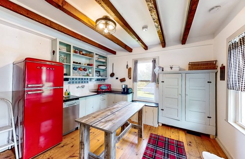Bring your loved ones to this charming, two-story home and experience a getaway like no other! Grab your favorite blankets, prepare delicious snacks in the well-equipped kitchenette, and unwind in the living room while watching everyone's favorite series or movie on the Smart TV with cable. Or if you are in a playful mood, pull out any of the board games available and get ready for a thrilling evening at home! Right off the living room is a cozy room with comfortable furniture and a gas fireplace that will keep everyone warm during your stay. Central heating and a stand-alone, propane space heater provide coziness throughout the rest of the home. The kitchenette offers old-school charm with a retro Galanz fridge and all the appliances and utensils needed to prepare tasty meals. It also features a Keurig coffee maker in case there are coffee enthusiasts in your group. This home features a convenient laundry room with a washer/dryer combo, so you are allowed to pack as light as you would like. After exploring and enjoying all the Adirondacks have to offer, slip into the hot tub and relax into your perfect stay.