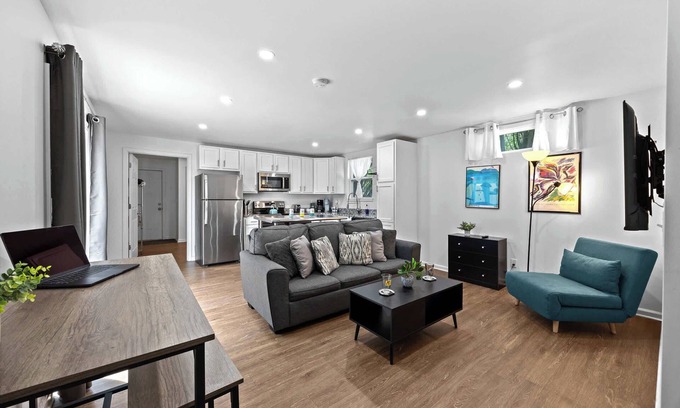 Experience 2 stylish 1-BR container units in a sustainable 2-story retreat nestled in Louisville’s Phoenix Hill. Each unit features A/C, free Wi-Fi, private entrance, full kitchen, smart TV, and in-unit laundry—ideal for remote work or dual-family stays. Relax outdoors on the balcony or patio, and enjoy easy access to NuLu’s breweries, distilleries, galleries, and vibrant dining scene. Designed for eco-conscious travelers seeking comfort, privacy, and walkable culture.