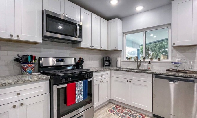 Welcome to Serene at Santa Monica in the Texas Hill Country! Our pet-friendly retreat includes a main house and casita, offering four bedrooms, three bathrooms, and space for up to 10 guests. Enjoy easy access to San Antonio’s top attractions like San Pedro Springs, The Alamo, San Antonio Zoo, Downtown River Walk, Lackland AFB, and the Botanical Gardens. Our photos showcase both professional and real-time images, so you know exactly what to expect. We can’t wait to host you!