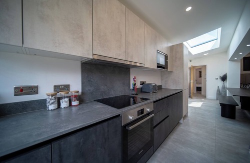 The state-of-the-art, fully stocked, modern kitchen with granite worktops and plenty of cabinetry is also on the ground floor and has seating for up to 16 people.