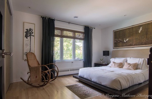 Located in Boucherville, just 18 km away from downtown Montreal, this French-speaking charming city with rich history has been consistently ranked among the top ten cities to live in Canada. Maison Chrysalis is a beautiful house artfully furnished by its globe-trotter owners. This house is situated on a very quiet street facing a neighbourhood park at walking distance from a small shopping mall, two big supermarkets, a wonderful “fruiterie” with very personalized service, a fish market, two very well-known bakeries, a golf course, close to bicycle trails, 10 minutes away from Les Îles-de-Boucherville National Park, a place that offers stunning natural beauty and plenty of opportunities for wildlife watching, kayaking, hiking or cross-country skiing.