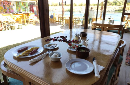 Small Nubian Nile view resort ,Common swimming pool, open and closed restaurants serving Nubain tagines and delicious meals.
