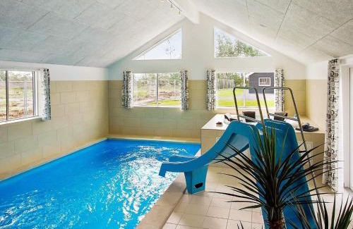 20 person holiday home in Hasselberg offers accommodations in Kappeln, 30 miles from University of Flensburg. This vacation home provides barbecue facilities. Free Wifi is available throughout the property and Weidefelder Beach is a 17-minute walk away. Featuring a terrace, this vacation home also includes a satellite TV, a well-equipped kitchen with a dishwasher, a microwave, and a fridge, as well as 4 bathrooms with a hot tub. The accommodation is non-smoking. The vacation home also features an indoor pool and a sauna for guests to relax in. You can play billiards, table tennis, and darts at 20 person holiday home in Hasselberg. Outdoor play equipment is also available for guests at the accommodation.