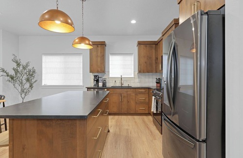 Fully Equipped Kitchen: The chef’s kitchen is outfitted with all the major appliances you'll need to prepare meals, plus a variety of syrups to elevate your coffee or soda experience. Its open layout ensures you can stay engaged with guests while cooking, making it a true heart of the home.
