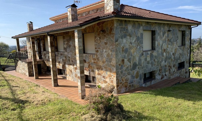Spacious house in Villaviciosa with garden and barbecue, ideal for families or groups. Fully equipped, with 4 bedrooms and in a quiet environment, perfect for enjoying Asturias. It has 2 exterior cameras that are disabled when people are present.