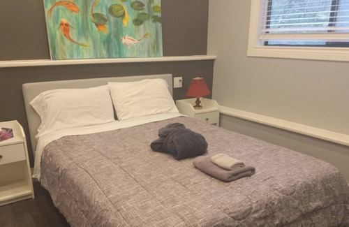 Primary bedroom with full ensuite. Queen Murphy bed in living area and 2nd bedroom off Kitchen. Fully furnished with everything you need for a short or long stay.