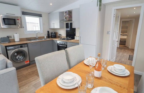 24 Sherwood consists of an open-plan living space with an electric oven, gas hob, microwave, fridge/freezer, washer/dryer, slimline dishwasher, Smart TV and sitting for four people. The bedrooms consist of one double with an en-suite shower and a twin with a TV. Outside there is a front enclosed decking garden area with furniture and off-road parking for two cars. Sorry, no pets are allowed and this is a no smoking property. Within 1.8 miles, you will find a shop, within 0.9, a pub and within 0.5 a lake. WiFi, fuel, power, bed linen and towels are all included in the price. Have a fantastic holiday at 24 Sherwood. Note: Steps leading up to property so take caution. Note: A minimum housekeeping bond of 150.00 GBP is required