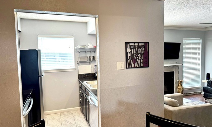 Discover this spacious 2BD/1BA condo near Baylor Medical Center and DFW Airport. Featuring, a queen bed and a full bed, granite countertops, and top appliances in a peaceful gated community. Enjoy amenities like: reserved carport, high-speed internet, pull-out sofa bed, pool, and full-sized appliances, and a new in-unit washer/dryer. Surrounded by attractions like: Towne Lake Park, Check 'Other Things to Note' for details on pet policies, parking, keys, ID, utility caps, and more.