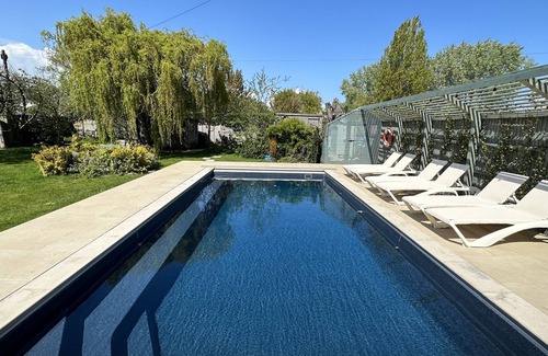 Room for up to 9 guests with private garden and all year round heated swimming pool