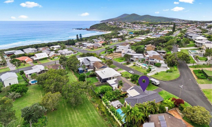 250m to One Mile Beach! Pool with slide, hot tub, fire pit, pool table! | House in Forster