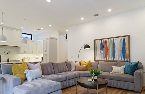 ✦ Living Room: Relax on a plush sectional with a large Smart TV (Netflix, Disney+, Hulu) and high-speed Wi-Fi.