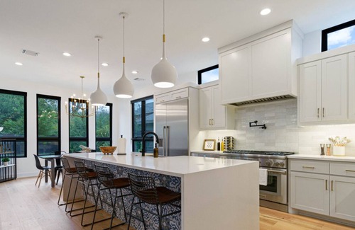 Your luxury Austin escape awaits! This 4-bedroom, 3-bath home sleeps 8 and features a hot tub and pool, with the option to upgrade to heated pool services. You`ll find high-end furnishings, a spacious living area, and a fully equipped kitchen with a wine cooler - perfect for gatherings. Enjoy outdoor dining with the built-in grill and mini fridge. Bright and colorful with natural light, located in East Austin, minutes from Lady Bird Lake, 6th St, and more. Plus, free parking for 4 vehicles!