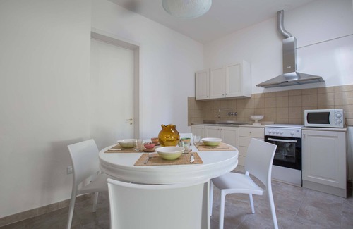The apartment consists of a living room with kitchenette and dining area, 1 bedroom with double bed and twin-sized bed, 1 full bathroom. The basic rooms are cozy and ideal for a holiday in Salento, near the beaches of Melendugno.