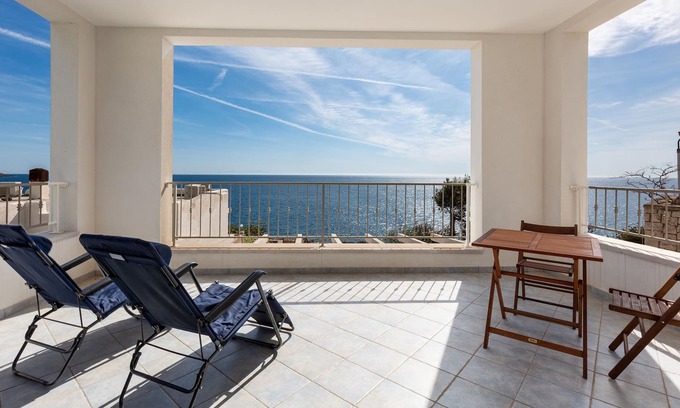 Villa Maria is a seafront holiday home in southern Salento, in Marittima marina, Diso. The house, which is 10 meters away from the sea and with private access to the cliff, is equipped with modern accessories and accommodates up to 8 guests.