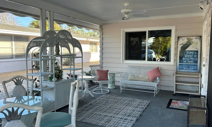 2Bd+2 Ba beach cottage w/private front/back yard, screened porch, firepit, grill | Cottage in Sarasota