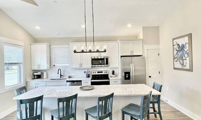 Welcome to CAROLINA BLUE, our brand NEW villa located in beautiful Outer Banks, in the charming town of Corolla. This spacious and stylish villa offers the perfect combination of comfort, convenience, and coastal living. With a FULLY STOCKED kitchen, pool, beach access, and its central location, our OBX escape is ideal for families and friends seeking a memorable beach getaway.