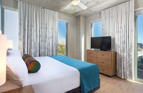Marvel at the glittering lights of this small-scale metropolis from the comfort of your resort, equipped with modern amenities to make you feel right at home. Stay at this brand new all-suite hotel in Austin, just steps away from all the entertainment on 6th street, for an authentic Texan vacation, including fine Southern hospitality and charm.