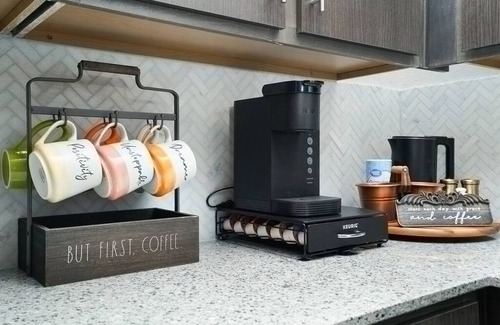 It is fully equipped with state-of-the-art cooking appliances that make it suitable for preparing any meal, whether a simple breakfast, quick snack, or a three-course gourmet dinner. Spacious granite countertops and a central kitchen island provide plenty of room for you to work your MasterChef magic.