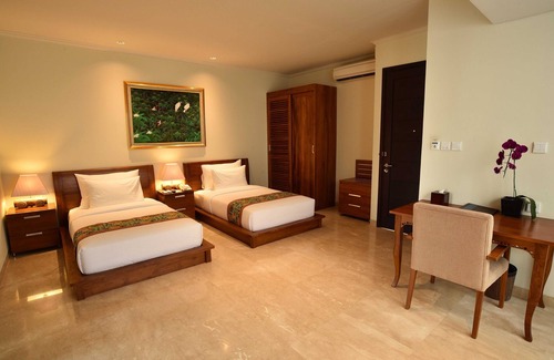 124m2/1334 family villa designed with natural marble floor, best quality teak solid furniture, big size bathtub in a spacious bathroom and pantry. A combination of twin and double bed setting with 1.3 meters depth private swimming pool lies nicely is just a perfect combination of family villa away from home on a vacation. The villa located within 5 minutes walk out from main resort towards monkey forest sanctuary. Guests are privileged to use the facilities at Ubud Wana Resort during stay in Ubud Wana Villa