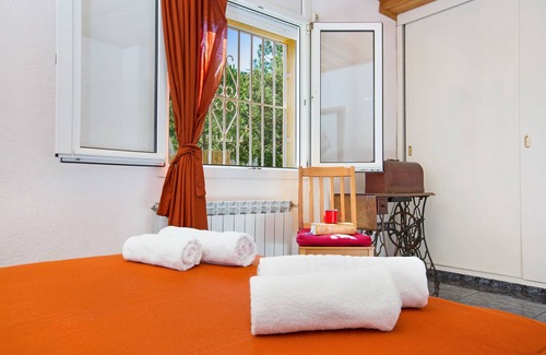 Basic 4 bedroom house with private swimmming-pool located in a very quiet area only 8km from the centre of Lloret de Mar and its stunning beaches.This house has a living room with fireplace, tv and access to a small but pleasant balcony with mountain views, a fully equipped kitchen with fridge, freezer, microwave, diswasher and washing machine.There are 3 bedroom with 3 double beds in each (140x190cm), 1 bathroom with bath and 1 bathroom with shower.From the main dining room stairs lead to a comfortable attic with tv, library, and 1 double bed (135x190cm).This house has a pleasant outdoor area with private swimming-pool (8x4m), garden, a built in barbecue with fridge and microwave, and a shady terrace where you can enjoy nice meals next to the pool.Parking space for 1 car included in final price.Optional A/C – 100 €/weekFree Wifi.Pets are not allowed.This property is only rented to families. Reservations of young people under 35 years of age are not allowed- Sheets and towels are not included. Cost 8 euros/person/sheets and8 euros/person/towels.- Cot and highchair: 5 euros/day/cot, 5 euros/day/highchairYou are very close from Lloret de Mar beach, one of the hot spots of Costa Brava!