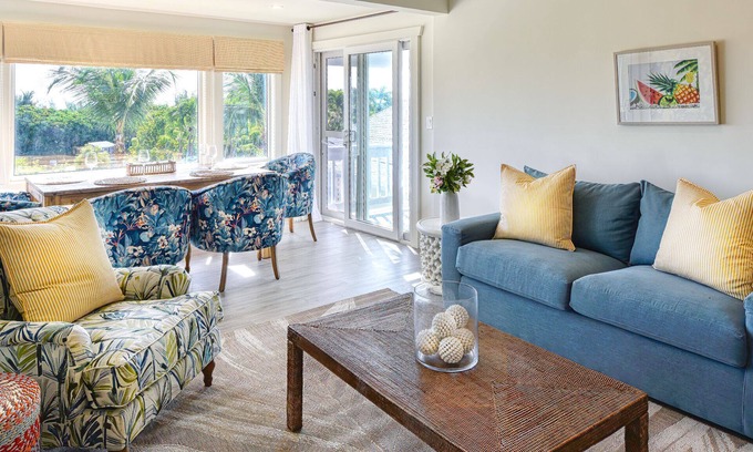 Our spacious two-bedroom first floor apartment offers an unforgettable stay. Enjoy an island view with the distant ocean on the horizon, accompanied by a constant, refreshing ocean breeze for natural comfort.