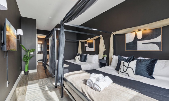 Our beautiful 2br features 2 king canopy beds and 2 queen beds (sleeps 8). Our place is perfect for small groups/families visiting NY, the American Dream Mall (&more) for short/long & last min stays.