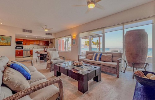 This exceptional beach villa in Puerta Cortés, the premier resort in La Paz, boasts a beautiful view of the sea.