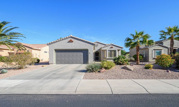 Unwind in "The Grand" in Surprise in this 1500 SF house 2 Bedroom & 2 Bathroom plus office and free WIFI. Master bedroom with King bed & 2nd bedroom with 2 twins. You can relax in comfort. Its fully furnished with all linens, a cook ready kitchen & a great patio.