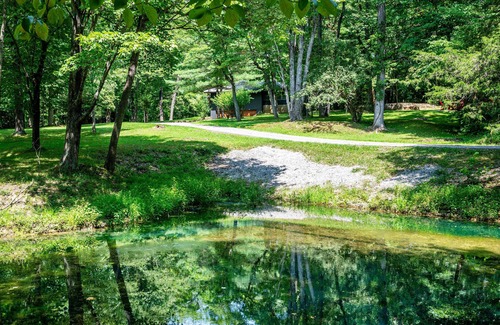 Come and enjoy the nature, adventure, beauty and comfort of the Shady Thicket Cabin! Property is secluded with a private frog pond on 5 beautiful wooded acres, making the Fall season a truly breathtaking experience. There are an abundance of persimmon trees and other attractive foliage, and this attracts deer, turkeys, ducks, and a large variety of wildlife!