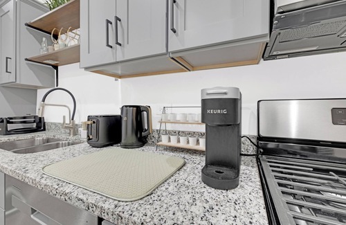 Live like a local just minutes from downtown while enjoying a thoughtfully designed space filled with modern touches, natural light, and everything you need to feel at home. This charming apartment features two inviting bedrooms — one with a queen bed and the other with a twin — plus a stylish bathroom with a refreshing shower and hairdryer for your convenience. The cozy living room includes a comfy sofa bed for extra guests.