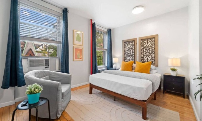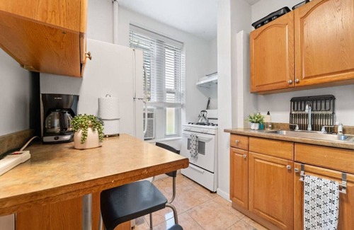 Beautifully re-furnished apartment with a shared courtyard in a great neighborhood! Situated in Hell's Kitchen and just a short walk to train & restaurants, you can definitely enjoy that NYC vibe during your stay! This apartment features two good-sized bedrooms, two toilets and a full bathroom with a vent and a small heater, and a fully equipped kitchen with a microwave, coffee maker, toaster, and fridge.