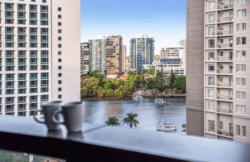 With a spacious living area and balcony you can spread out and totally relax. Start up the coffee machine in the morning and enjoy a cup on the balcony whilst watching the ferries head up the Brisbane river and the birds fly over the Botanic Gardens. Well equipped for families, couples, singles or groups of friends. With flexible bedding setups you have the option of a king or two single beds in the main bedroom and also in the living room. A portacot is available and a high chair, baby bath seat and children's plates and cutlery are also included.