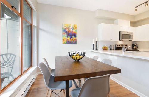 This renovated 2Br/2Ba townhouse features a complex hot tub & heated pool. The home has a fully equipped & stocked kitchen, in suite W/D, cable and many hotel like amenities. It comfortably sleeps 7 and is located right across the street from Whistler Village! Located away from the noise and in the comfort of this beautiful home, while being right across the street from the action! It`s a short and easy 9-minute walk to the ski lifts or use the free shuttle that stops outside your front door!