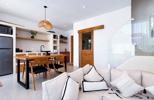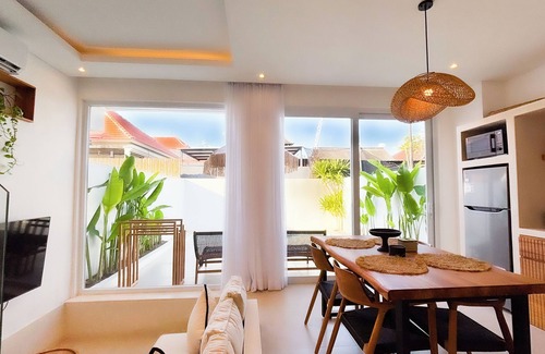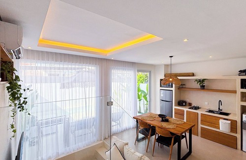 Villa Balinay is a sanctuary of comfort and style, meticulously designed to cater to your every need. Upon entering, you are welcomed into a fully equipped kitchen, featuring modern appliances and all the essentials for preparing meals with ease. Adjacent to kitchen is a cozy living room that invites relaxation with its sunken lounge, plush cushions, smart TV, and air conditioning—perfect for unwinding after a day exploring Canggu.