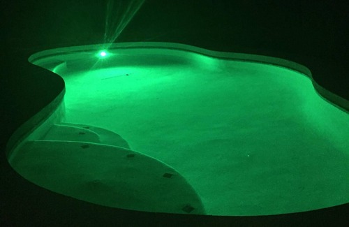 The tropical pool is large enough to swim laps. The pool is approximately 26'x13' and is 3' at the shallow end and 5' at the deep end. There are three steps going from the patio to enter the pool as well as a swim out in the deep end. There is a small sun shelf with a bubbler to sit on the top step. Optional heated pool for winter guests with the fee charged upon arrival of $25. per day.